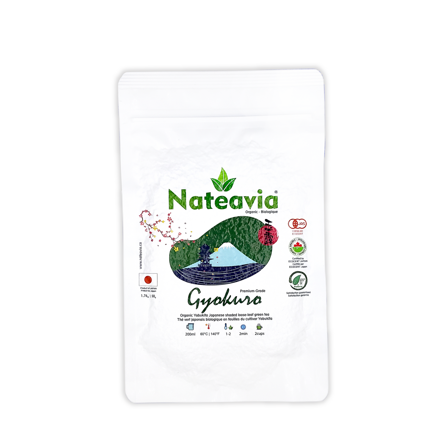 Experience the refined elegance of Nateavia Organic Japanese Gyokuro Tea, a premium loose leaf green tea cultivated in the tea fields of Kagoshima, Japan. Crafted from the esteemed Saemidori cultivar, this shade-grown green tea is celebrated for its distinctive “oika” aroma, a captivating marine or seaweed-like fragrance that hints at its coastal terroir and meticulous cultivation.
